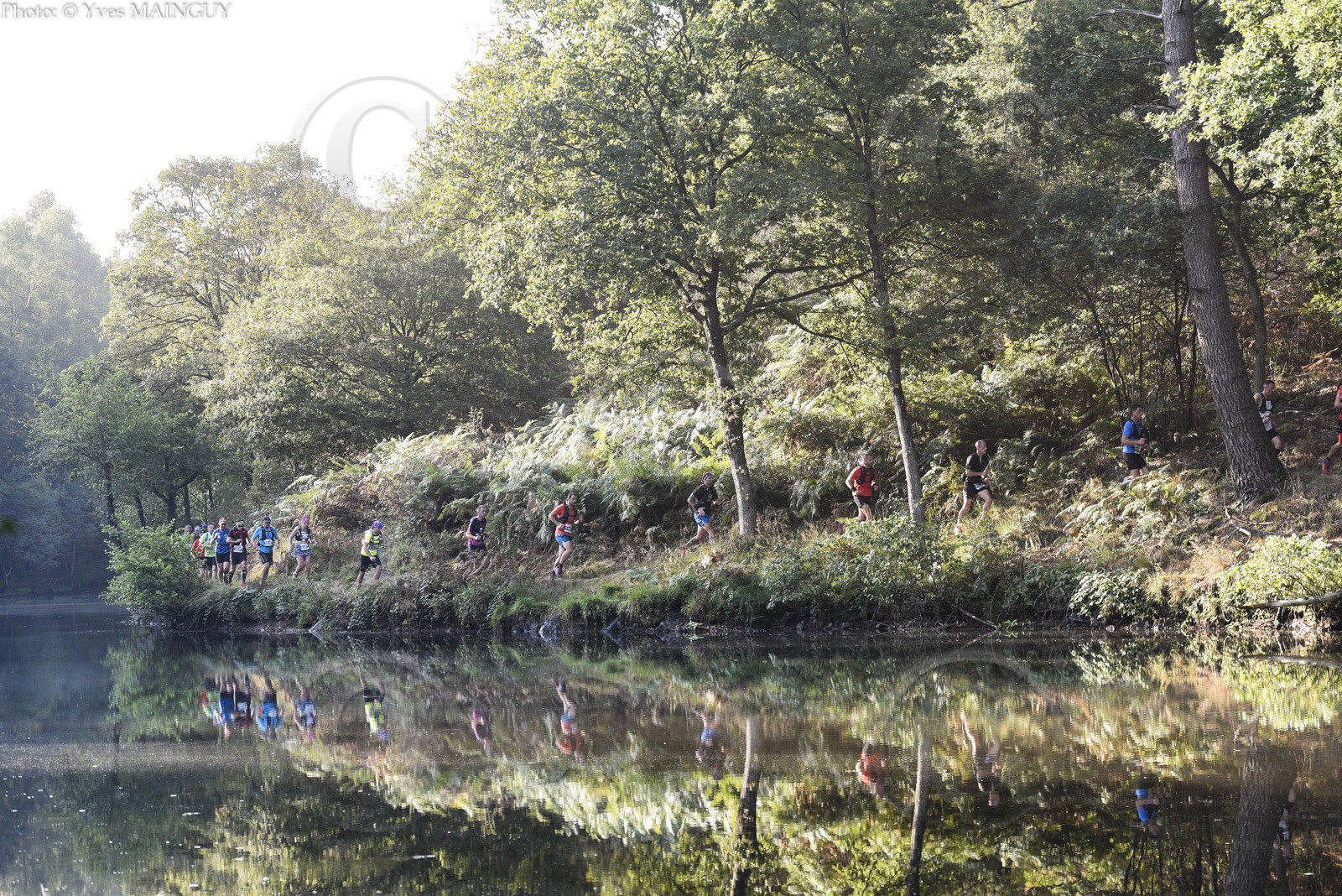 TRAIL DES LEGENDES DE BROCELIANDE 2020, Excalibur 52km (dos. rouge), Le Graal 26km (dos. bleu) et relais (dos. blanc). Lac de Tremelin, Iffendic (35), dimanche 13 septembre 2020. Photo: © Yves MAINGUY