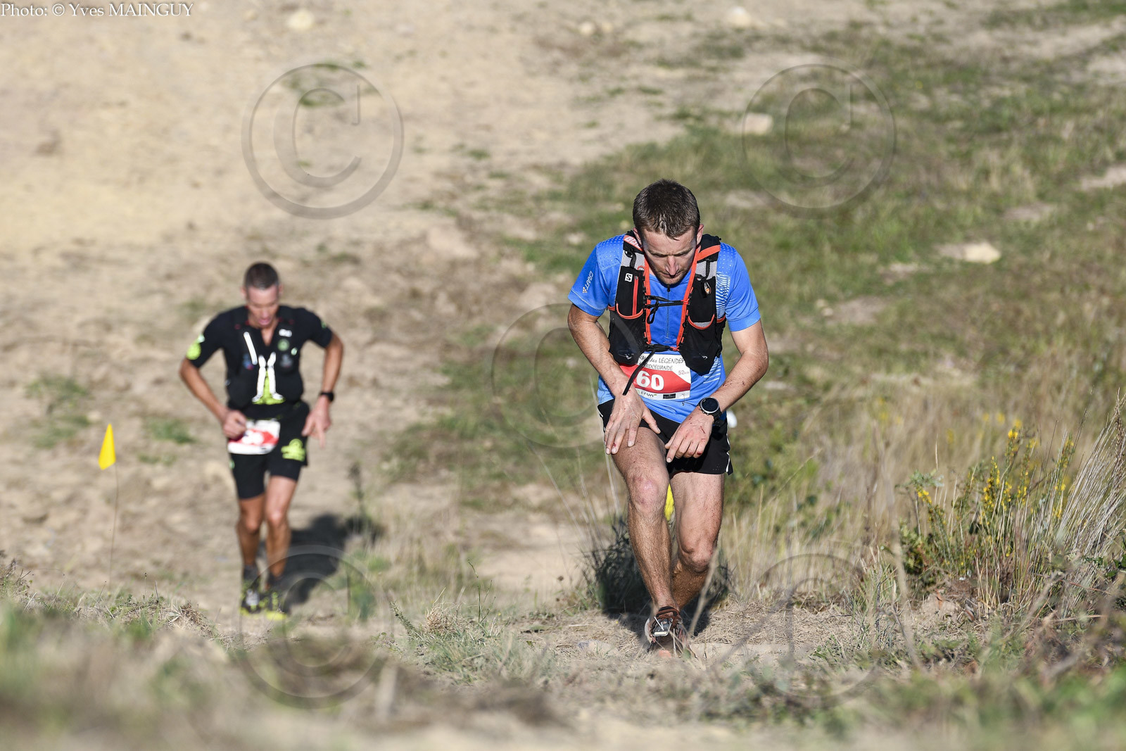 | Description | Pierre THETIOT (Cla. 52km: 11H) devant Sylvain MORIN (Cla. 52km: 6H). TRAIL DES LEGENDES DE BROCELIANDE 2020, Excalibur 52km (dos. rouge), Le Graal 26km (dos. bleu) et relais (dos. blanc). Lac de Tremelin, Iffendic (35), dimanche 13 septembre 2020. Photo: © Yves MAINGUY |