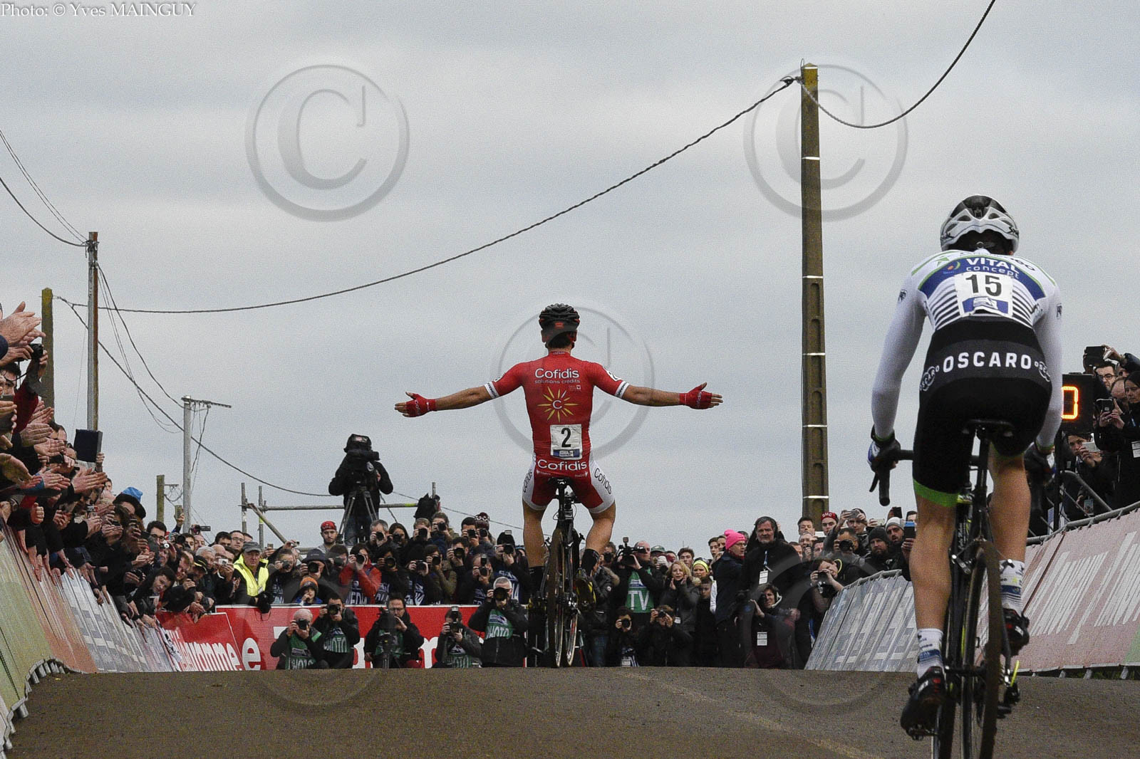 Clement Venturini (1� / Cofidis) devant Arnold Jeannesson (2� / Fortuneo Vital Concept). Course Elites Hommes. CHAMPIONNAT DE FRANCE DE CYCLO-CROSS 2017. Lanarvily (29), le dimanche 08 janvier 2017. Photos: � Yves MAINGUY
